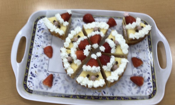 今日もご利用者様に手伝って頂きながらサンタのケーキを作りましたよ!