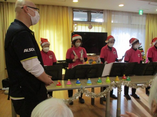 職員も参加ベルを奏でました(^_^)/~ありがとうございました。来年も楽しみにしております。 ご覧いただきありがとうございました。ケアスタッフでしたm(__)m