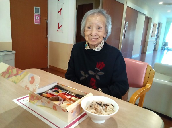 赤飯、お吸い物と一緒に食べてもらいました。