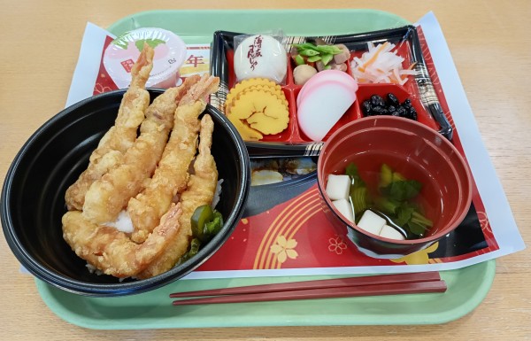 本年、最初のイベント食はえび天丼でした♪
