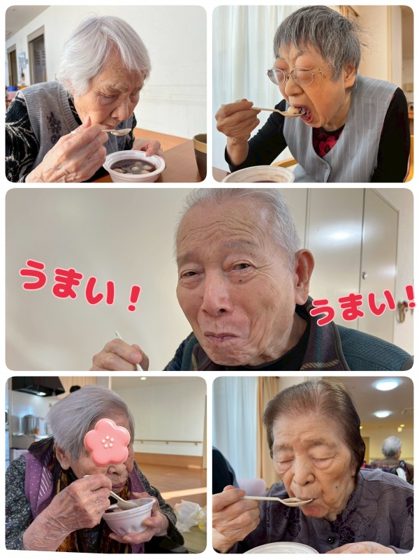 数年前から、松井ホーム長が皆様にお正月を楽しんで頂きたいと作り始めた手作りのお汁粉。愛情たっぷりの手作りお汁粉です。