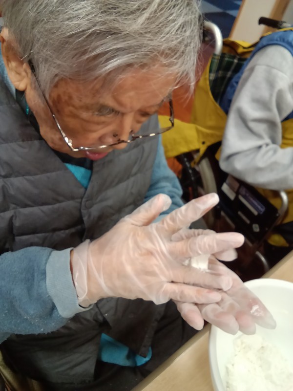 お汁粉用の白玉粉をこねて~こねて~まるめて頂きました!
