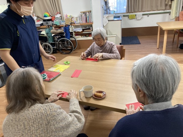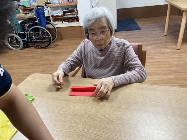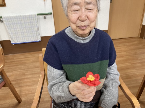 まずは皆さんにお花紙をひたすたら折っていただきます!