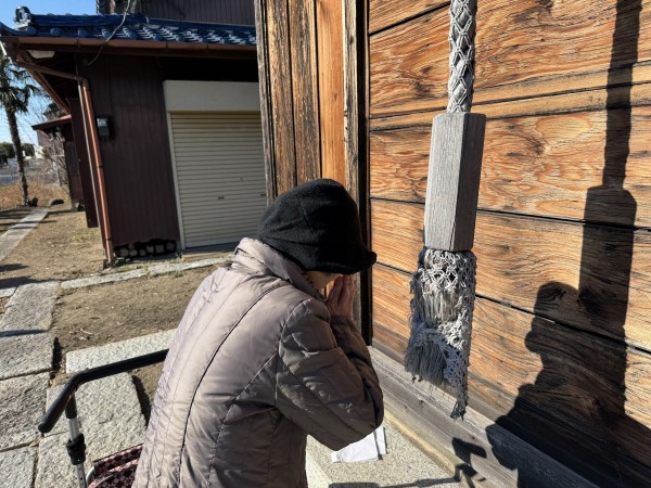 新方川で身を清め、神社へと向かいます。道中、太陽が顔を出し、北風も止みます。
