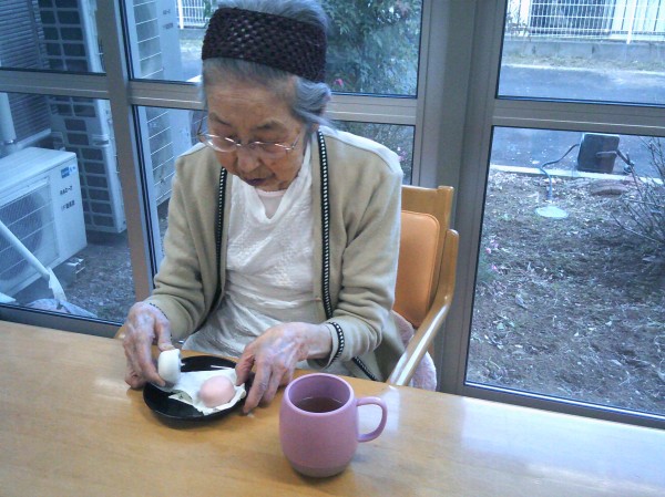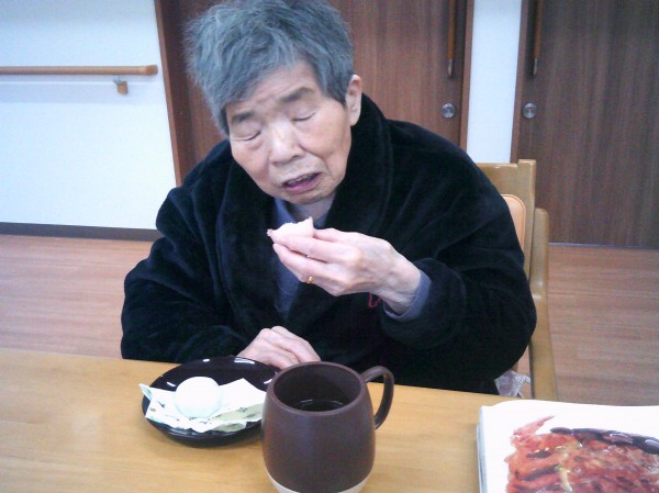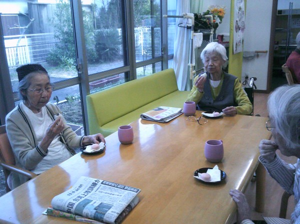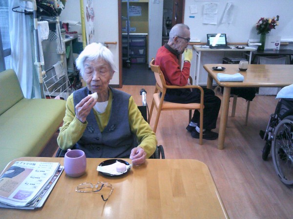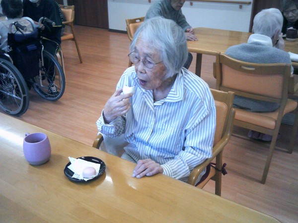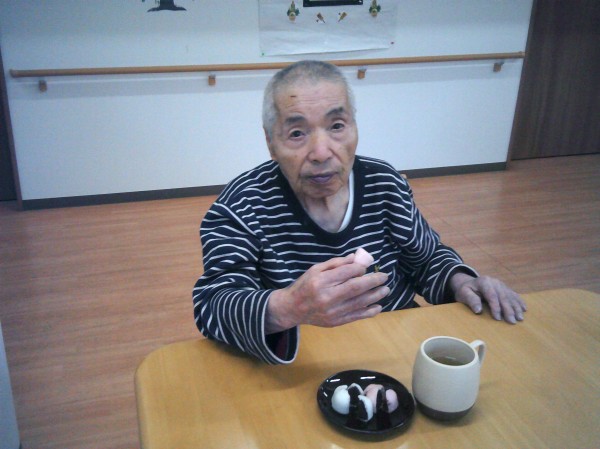 今日は1/1 おやつに紅白饅頭をお出ししました。 餡子がいっぱい入っていて嬉しいな? と喜ばれておりました(*^^)v