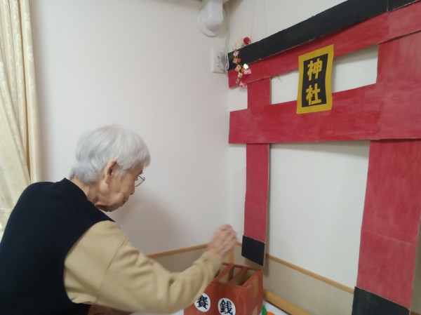 手作りの神社でお正月気分を味わいました(*^-^*)