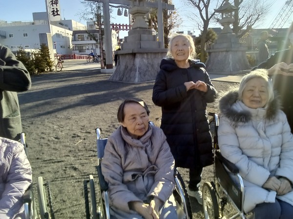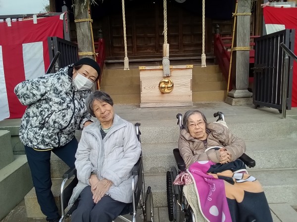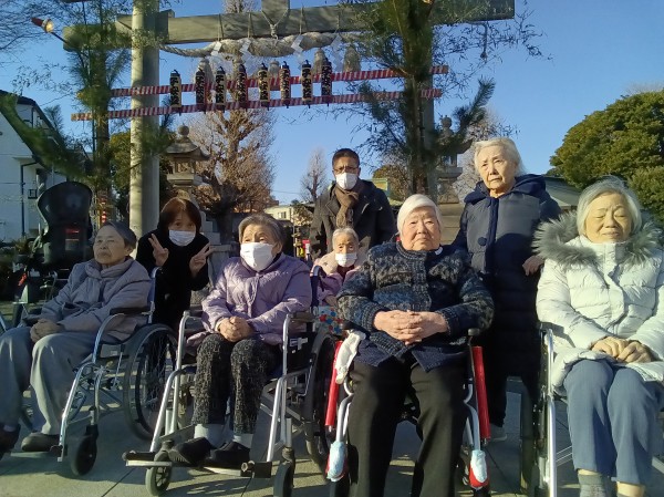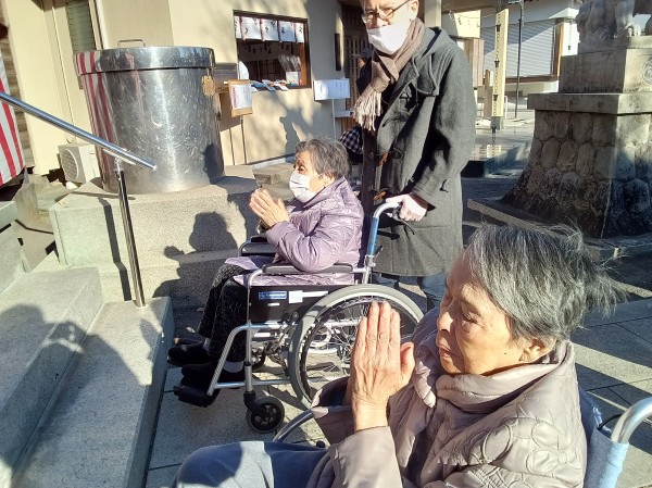 普段はあまり、外に出られない方や、外に出たがらない方々も、初詣に行きましょ!とお誘いすると、「お参り?行きたいねぇ」と、二つ返事でお出掛けになりました(*^-^*)