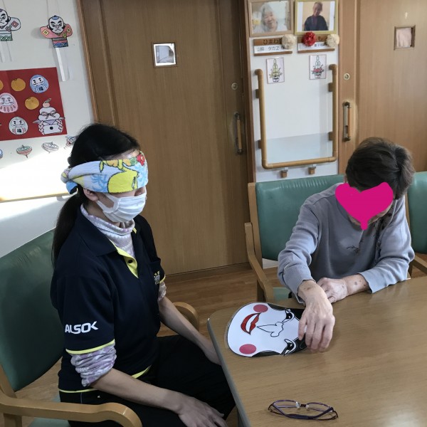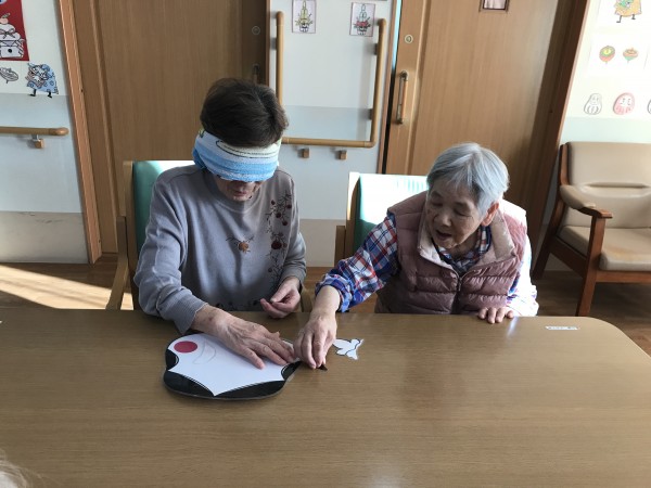 やっぱり元旦レクは福笑い!皆でたくさん楽しめました。
