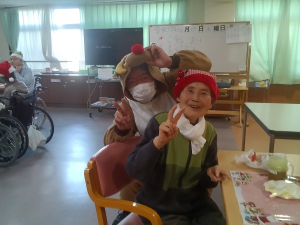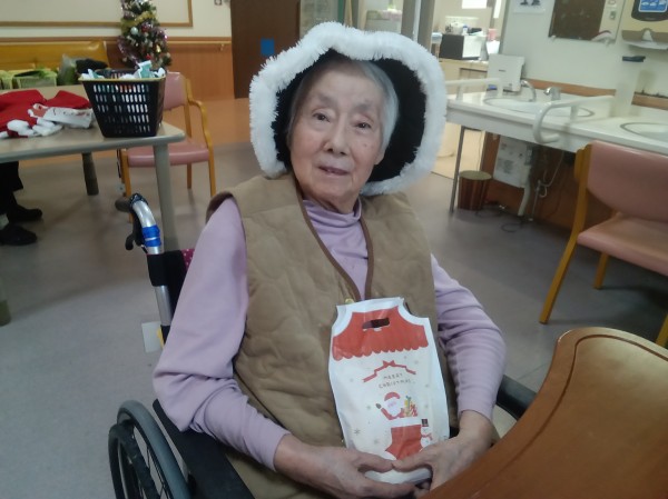 サンタクロースに託されたプレゼントをご利用者様おひとりずつに手渡し。