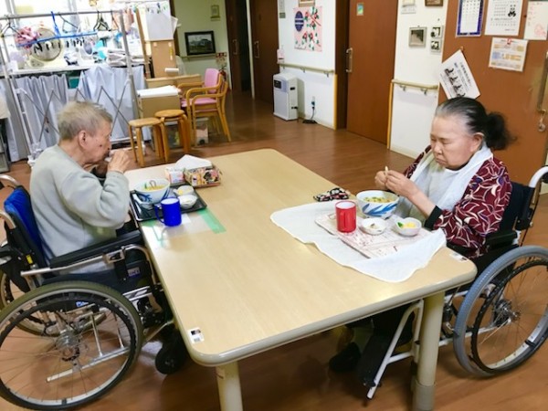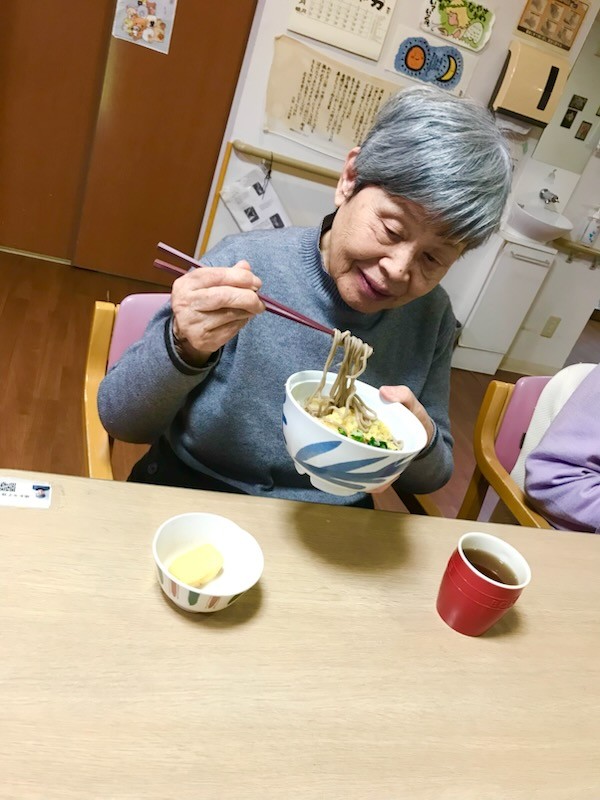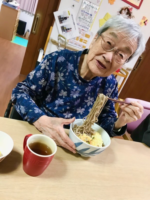 ながら、喜んでお蕎麦を召し上がる利用者様