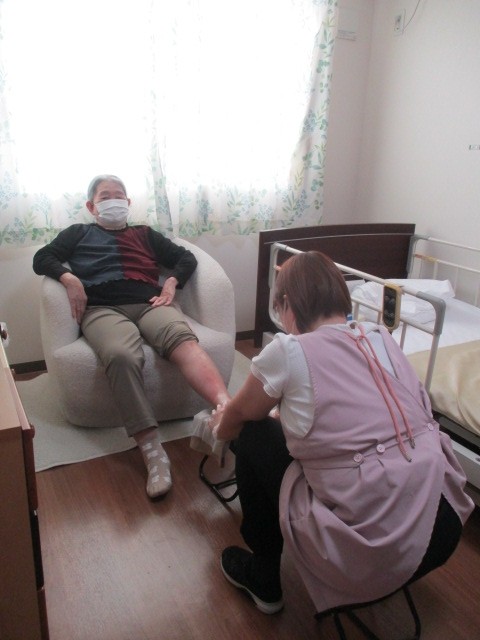 気持ちよさそうにされておりました(^0_0^) ウトウトされたりお話しされたりとされており、身体や足が軽くなったみたいと喜ばれておりました。