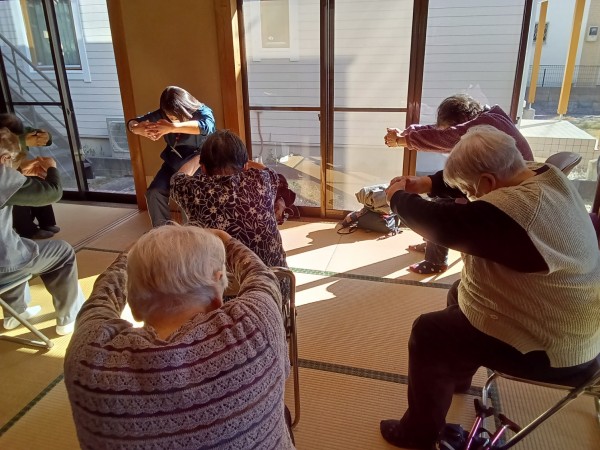 前半は、理学療法士の先生によるストレッチからスタートし、左右で異なる動きを取り入れた脳トレ要素のある体操を行いました。体を動かしながら、自然と笑顔がこぼれ、和やかな雰囲気でした。