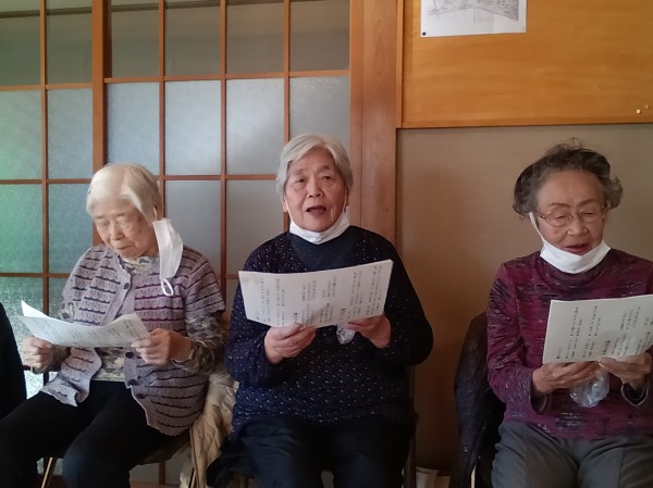 後半では、お茶を飲みながら、ギターの生演奏に合わせて「雪国」「北の宿」「かあさんの歌」など、懐かしい12曲をみんなで歌いました。思い出がよみがえったのか、表情を和らげながら口ずさむお姿が印象的でした。