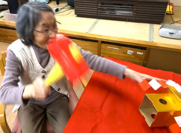 ということで、無病息災を願ってまずは鏡餅を小槌で叩いていきます\(^o^)/えーい