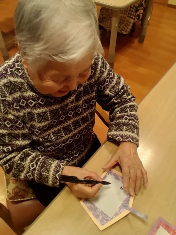 新年を迎え、ご入居者と職員で絵馬作りを行いました。