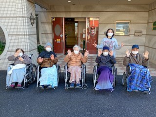 ただいま帰りました~ 施設の前でパシャリ