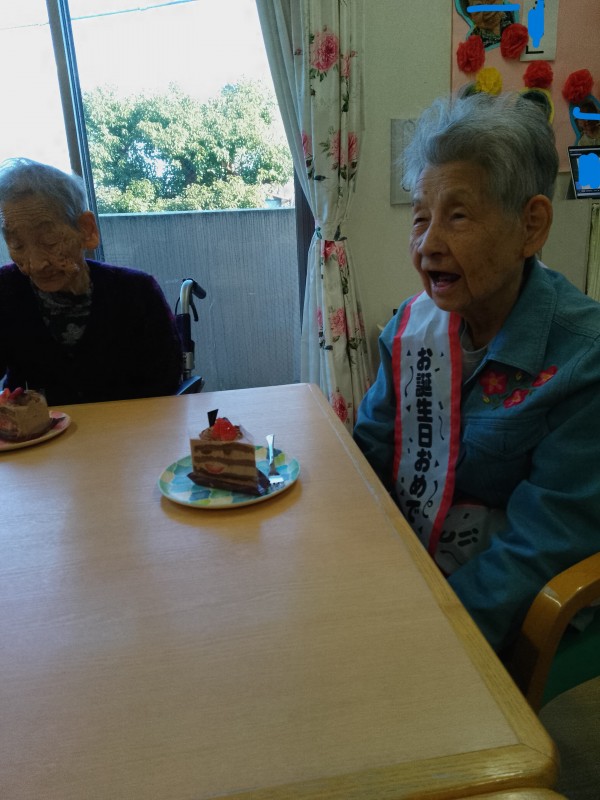 皆様と一緒にケーキを召し上がられ「ケーキも美味しいけど今度はおせんべいも出してね!」