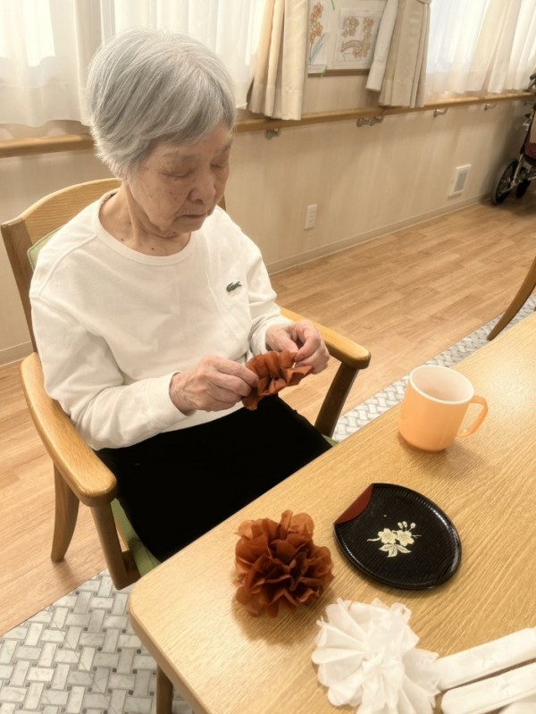地域運営推進会議・家族会の看板をご利用者様と一緒に考えながら作りました♪今年最初の会なので「干支にしましょう」と直ぐに決定!花紙でお花を作って下さるご利用者様「馬らしさを表現したいね」と話し合いながら茶色を使ってみました(^^)「文字は華やかにしたいわね」とカラフルに塗って下さいました♪