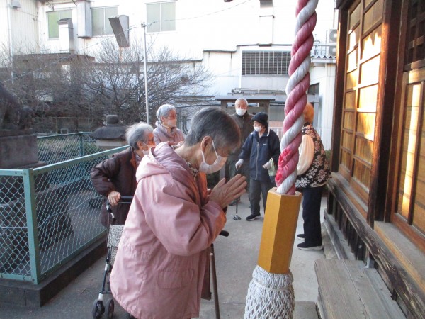 新年初の外出レクリエーションとして、川越菅原神社へ初詣に出かけました。