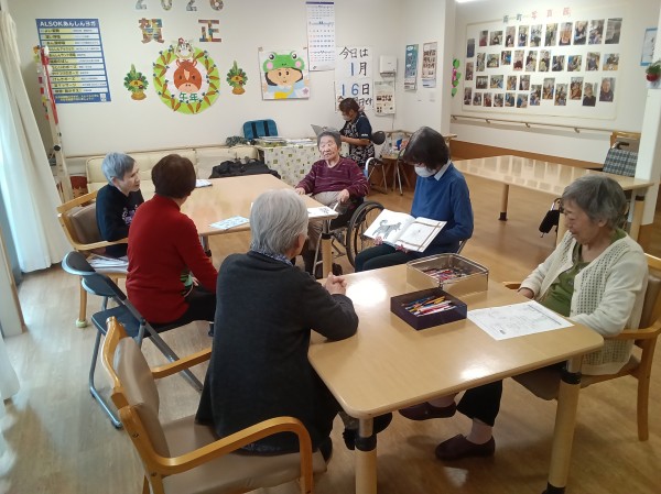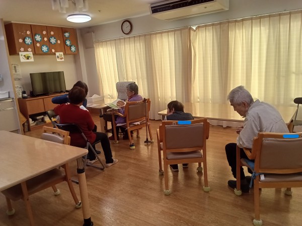 読み聞かせの後は「これは何だろう??」とご入居者様絵本に手を伸ばしパラパラとめくる姿も★ミ