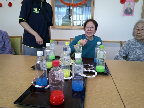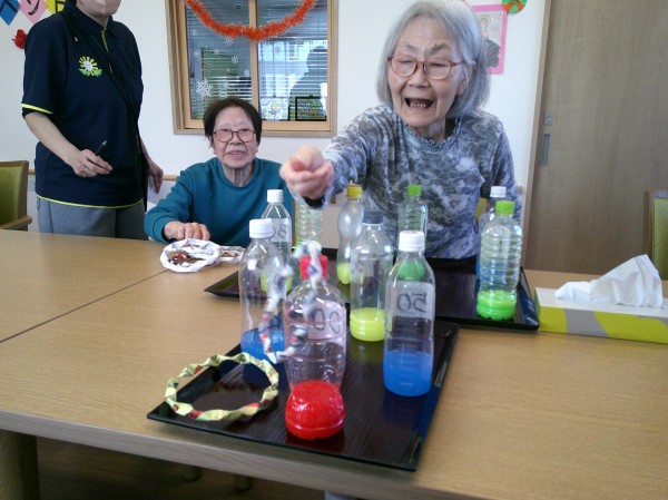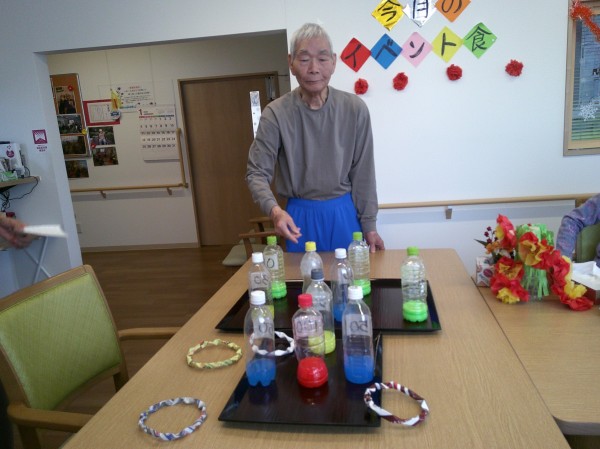 前回、ご紹介したボウリング大会で使用したペットボトルのピンを活用して、今回は輪投げ大会を開催致しました!