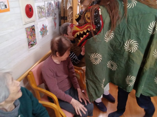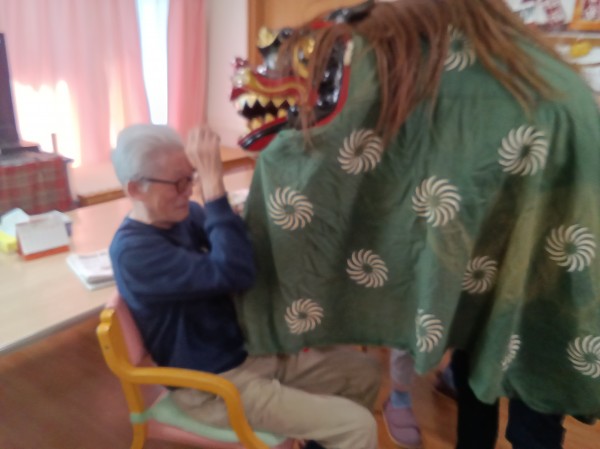 縁起物の獅子舞いがホームに来てくれました。