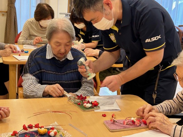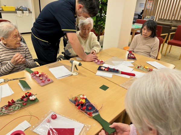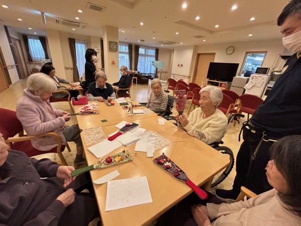 今回の羽子板作りには、男性のご入居者様も参加してくださいました。