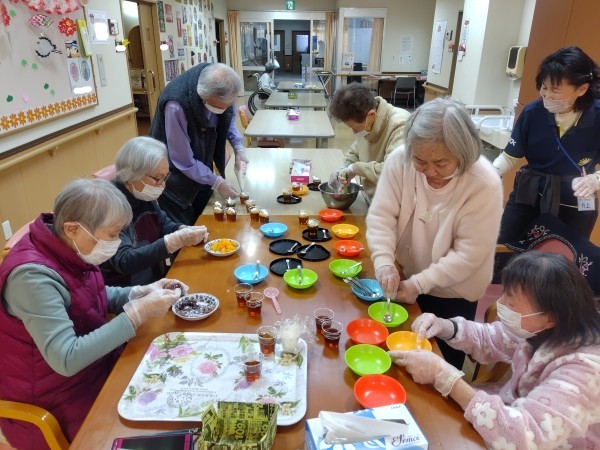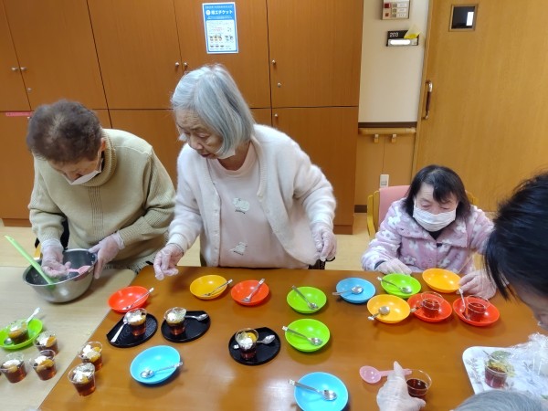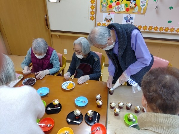男性も女性も楽しそうに取り組んでいただき、素敵なカップゼリーが完成しました。