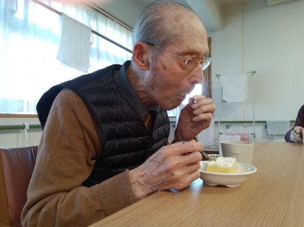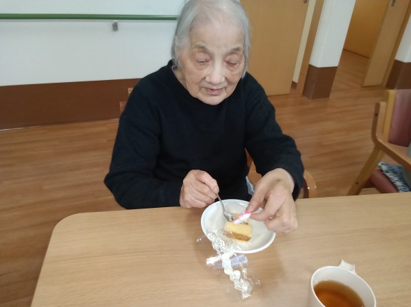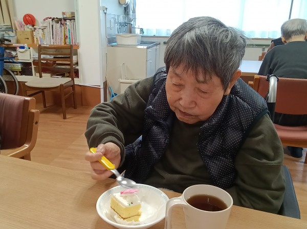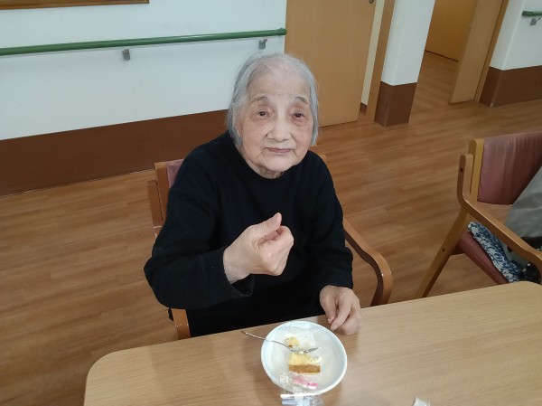 今月の誕生日会では、皆さんで作る手作りケーキではなく、お店のケーキにしてみました。