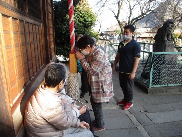 初詣レクリエーションも最終日の5日目。本日はまさに最高の参拝日和でした。雲ひとつない青空、風もほとんどなく、ぽかぽかとした日差しに包まれて、皆様の表情もいつも以上に明るく感じられました。