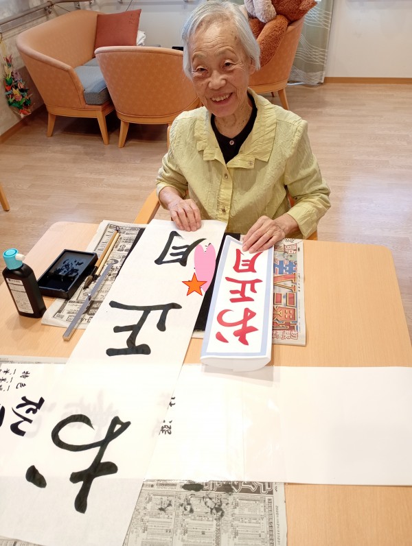 いつもよりだいぶ大変な習字の時間でしたが…素敵な作品ばかりです(*^▽^*)
