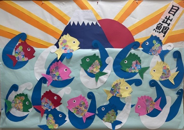 この壁画は、海で泳いでる鯛をイメージし、作成しました(^^)/