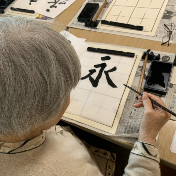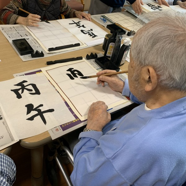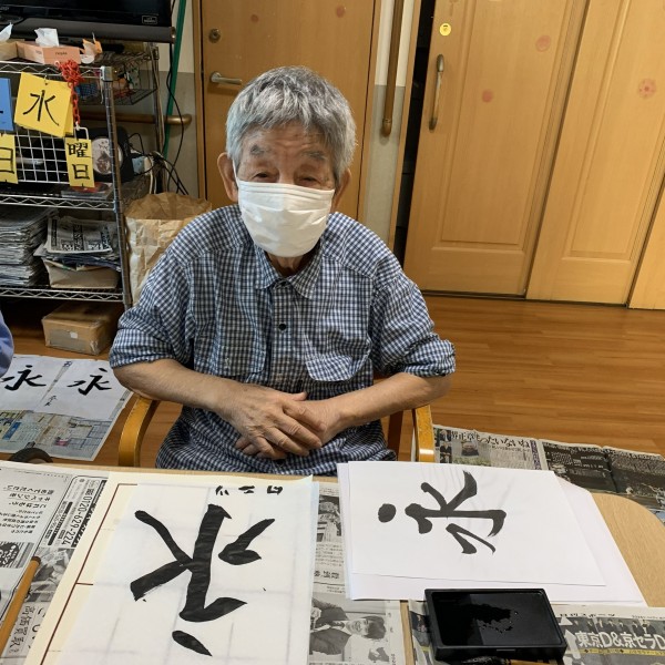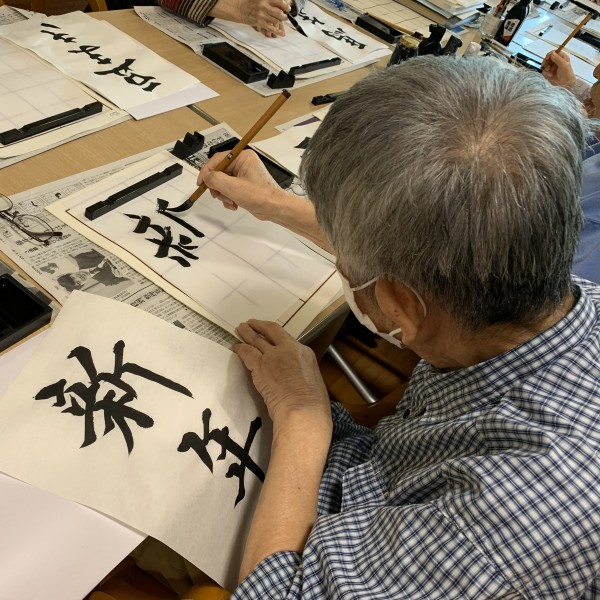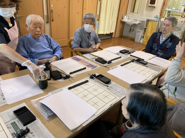 習字の先生がおいで下さり、皆さん真剣に書かれていました。