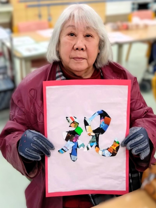 1つ選んでいただき、文字部分に色とりどりで質も様々な紙を貼り付けていただきました。