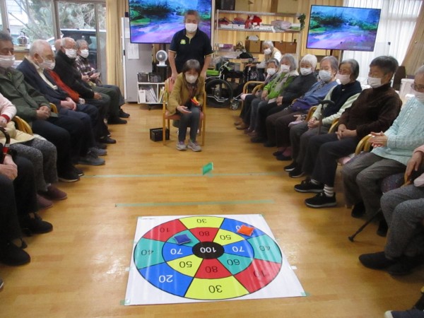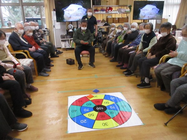 「どこを狙おうかな」「真ん中いけ」と皆様真剣な表情。投げる度に歓声や拍手が起こり、自然と応援の声も飛び交いました。点数を競いながらも笑顔と笑い声があふれ、わくわくゲームの日にぴったりの、楽しいひとときとなりました。次はどんなゲームが登場するのでしょうか?皆様の「次は何かな?」という期待が、今から高まっています♪