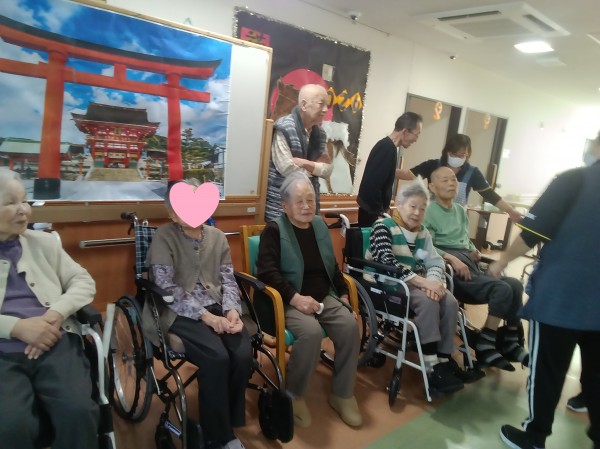 と、鳥居の写真を囲むように、自ら来られるご利用者様や誘導して来られるご利用者様など、撮影前には個々のポジションへの誘導をスタッフ総出で行いました。