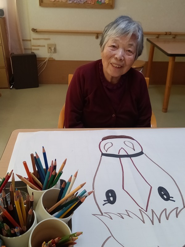 ぬり絵が大好きで日々ぬり絵を楽しんでおられる利用者様の協力で