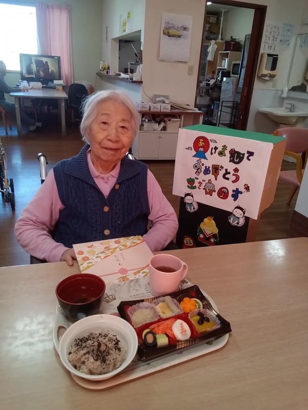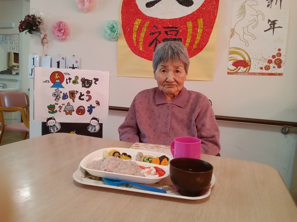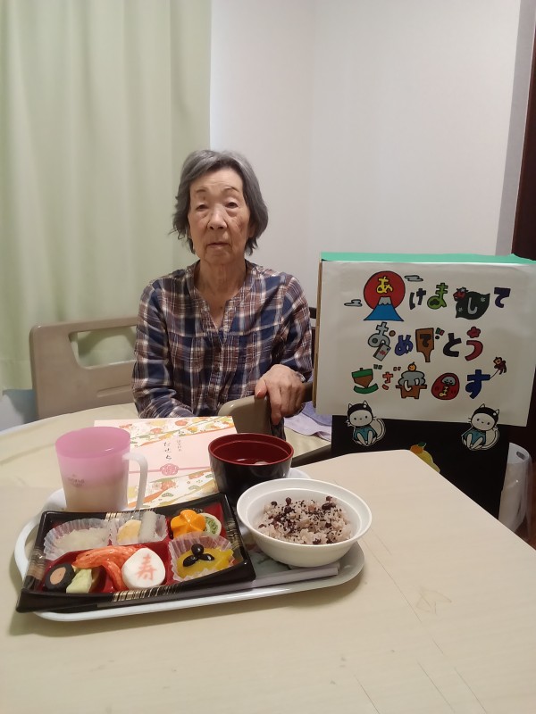 お正月のお食事ということで、おせち料理を召し上がっていただきました。