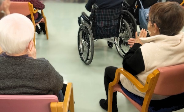 ご利用者様方の熱い視線の中、先生の伴奏に合わせて大きな声で歌ってくださいました。