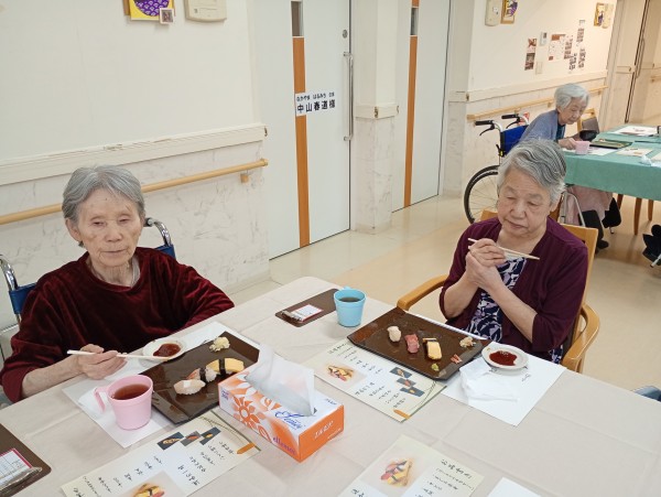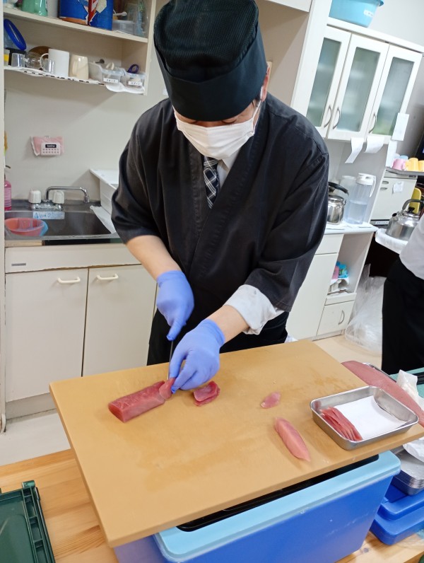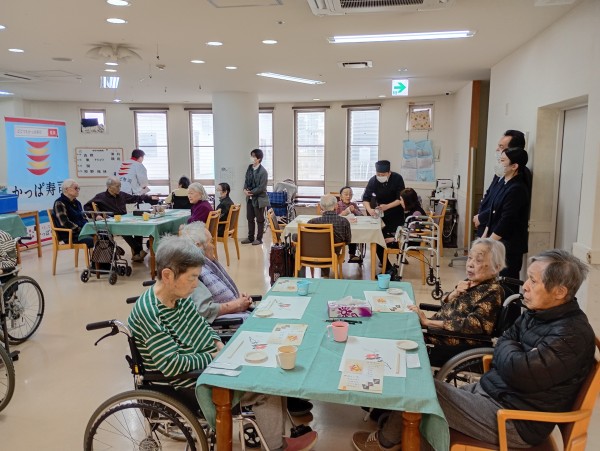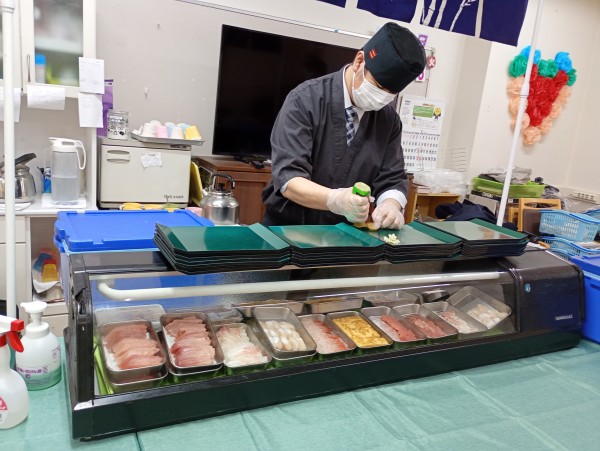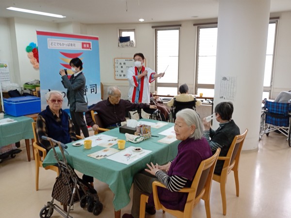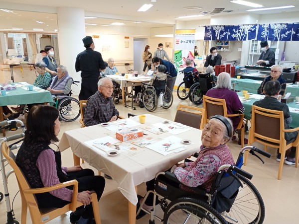前回はお寿司をお店から持ってくる感じで行ったレクリエーション、今回は目の前で作っていただき召しあがるスタイル!
