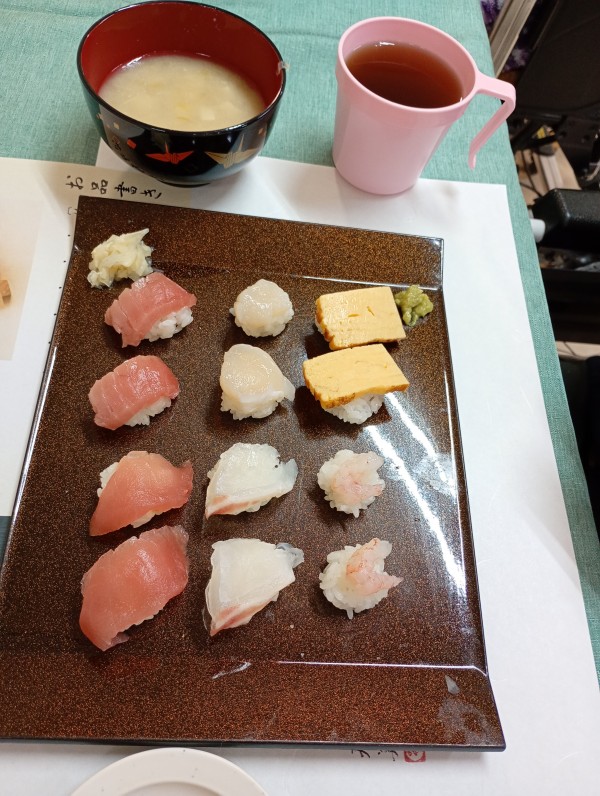 さあはじめましょうぞ!青柳施設は今日のお昼はお寿司だday!