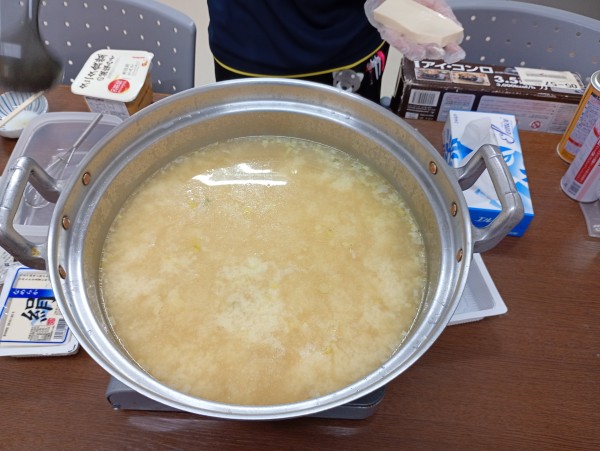 そんなしばれる時期にお寿司だけではいけないと職員の方がお味噌汁を作ってくれました(V)o¥o(V)