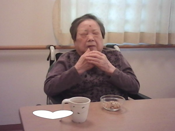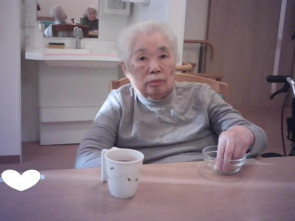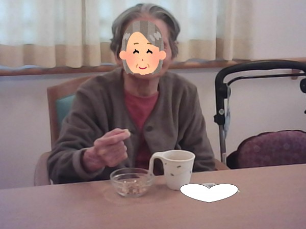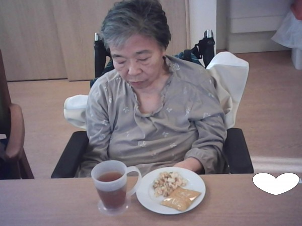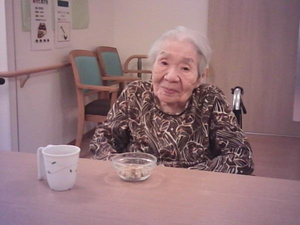 では1階と2階で揚げ餅をおやつに召し上がった様子をご覧ください(^_-)-☆