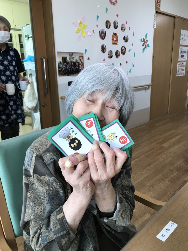 1Fの利用者様は塗り絵や作品作りが好きですが、2Fはわいわいとお時間を過ごすのが好きなんです。