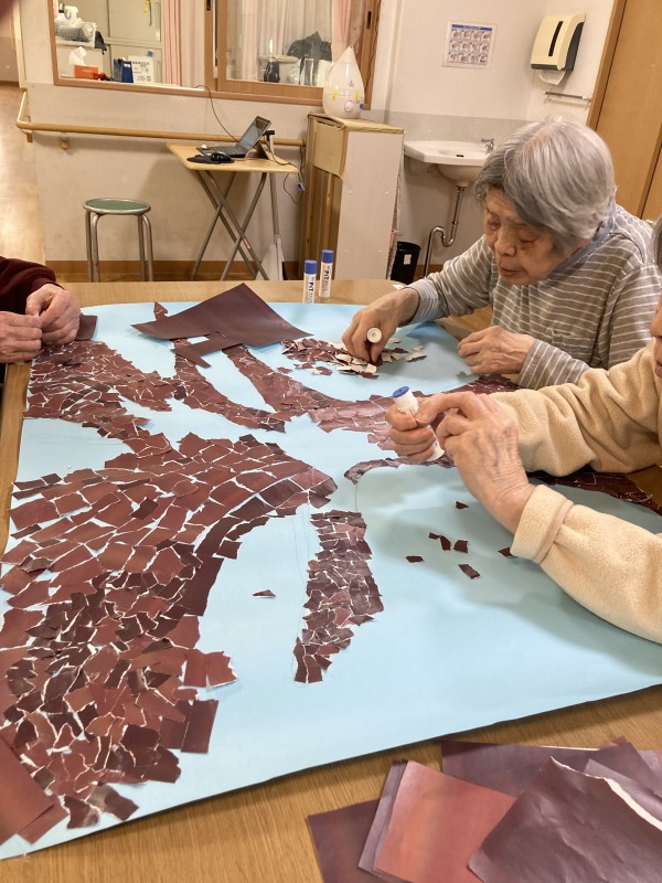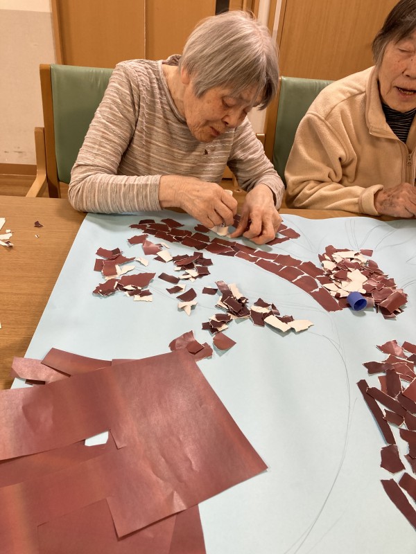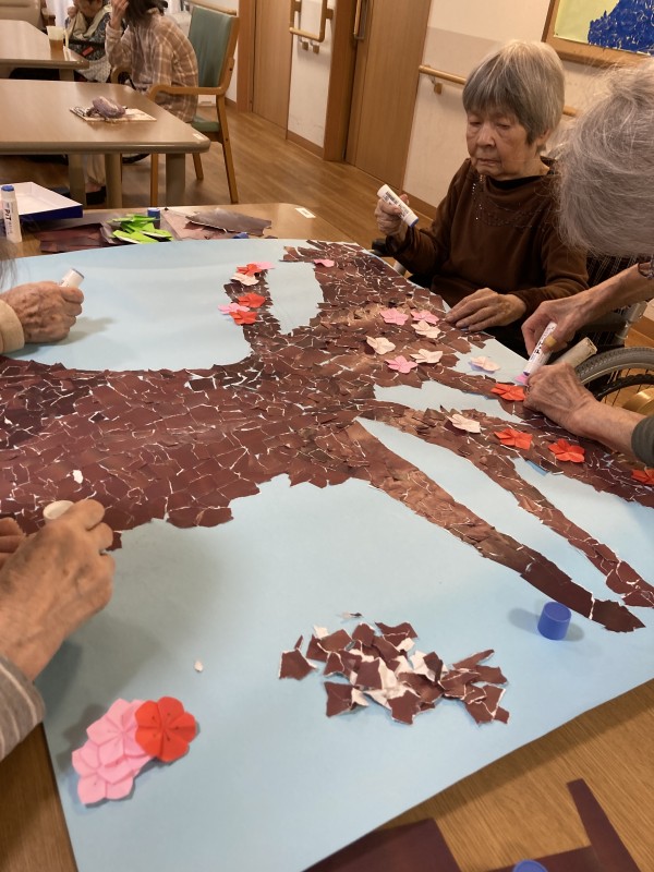 木が完成したら折紙で折った梅とウグイスを貼って完成です!