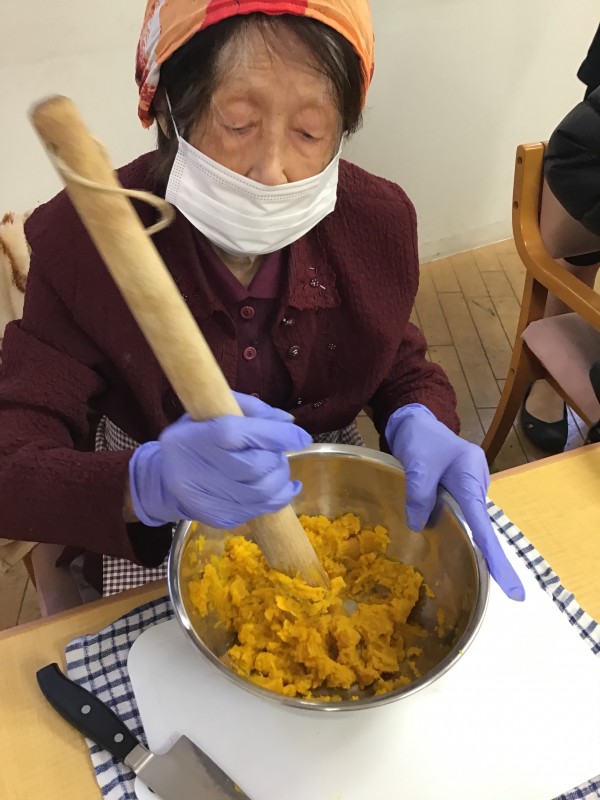次に茹でたカボチャをつぶします(#^^#)