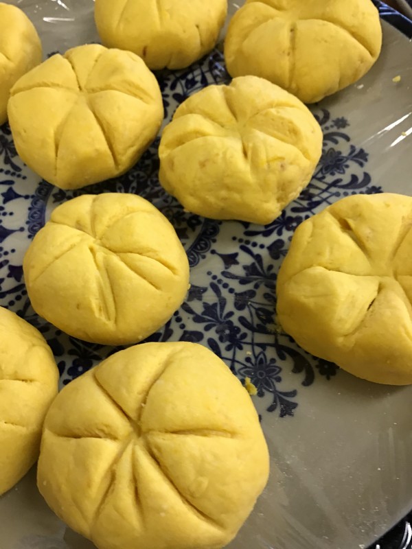 そして、、、カボチャの生地でアンコを包みましょう(^_-)-☆