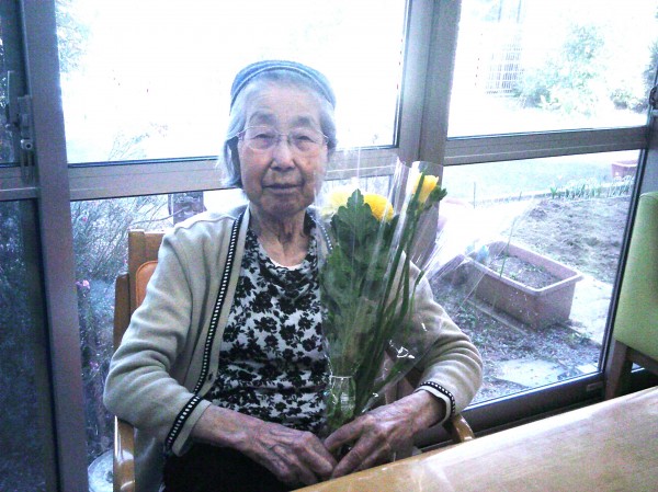 今日はご家族様がお花の差し入れがありました。 菜の花やすいせんや菊の黄色いお花でまとめてありました。 心が落ち着くようにとのことでした!!
