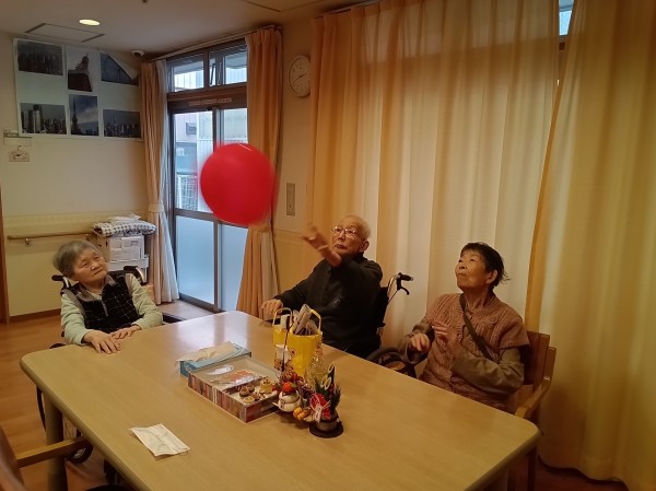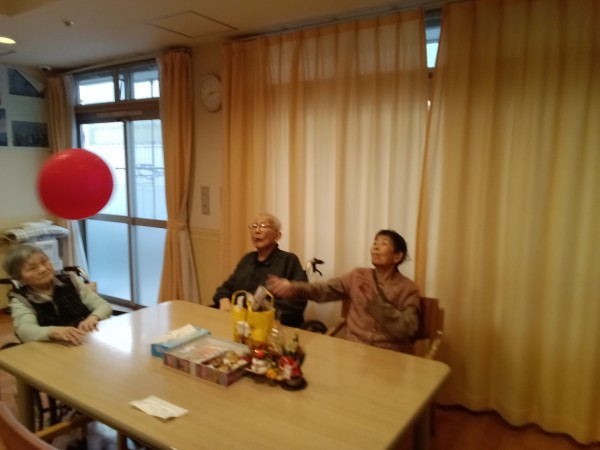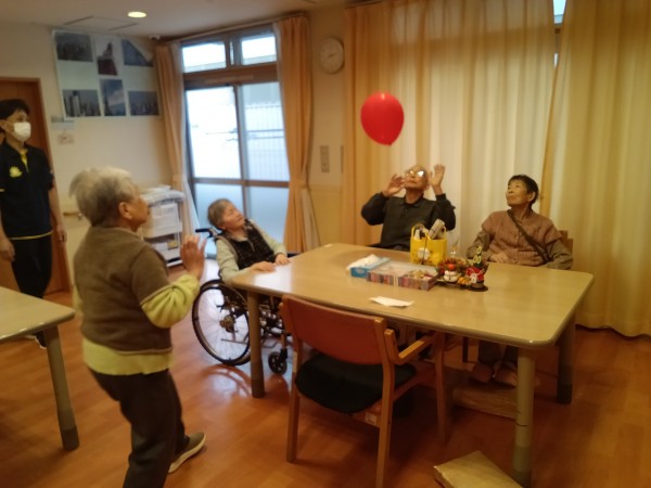 風船バレーは座りながら出来ますし、とても良い運動になります。