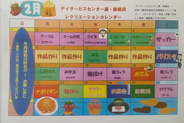 活遊記~☆2月のイベントカレンダー表の完成です☆